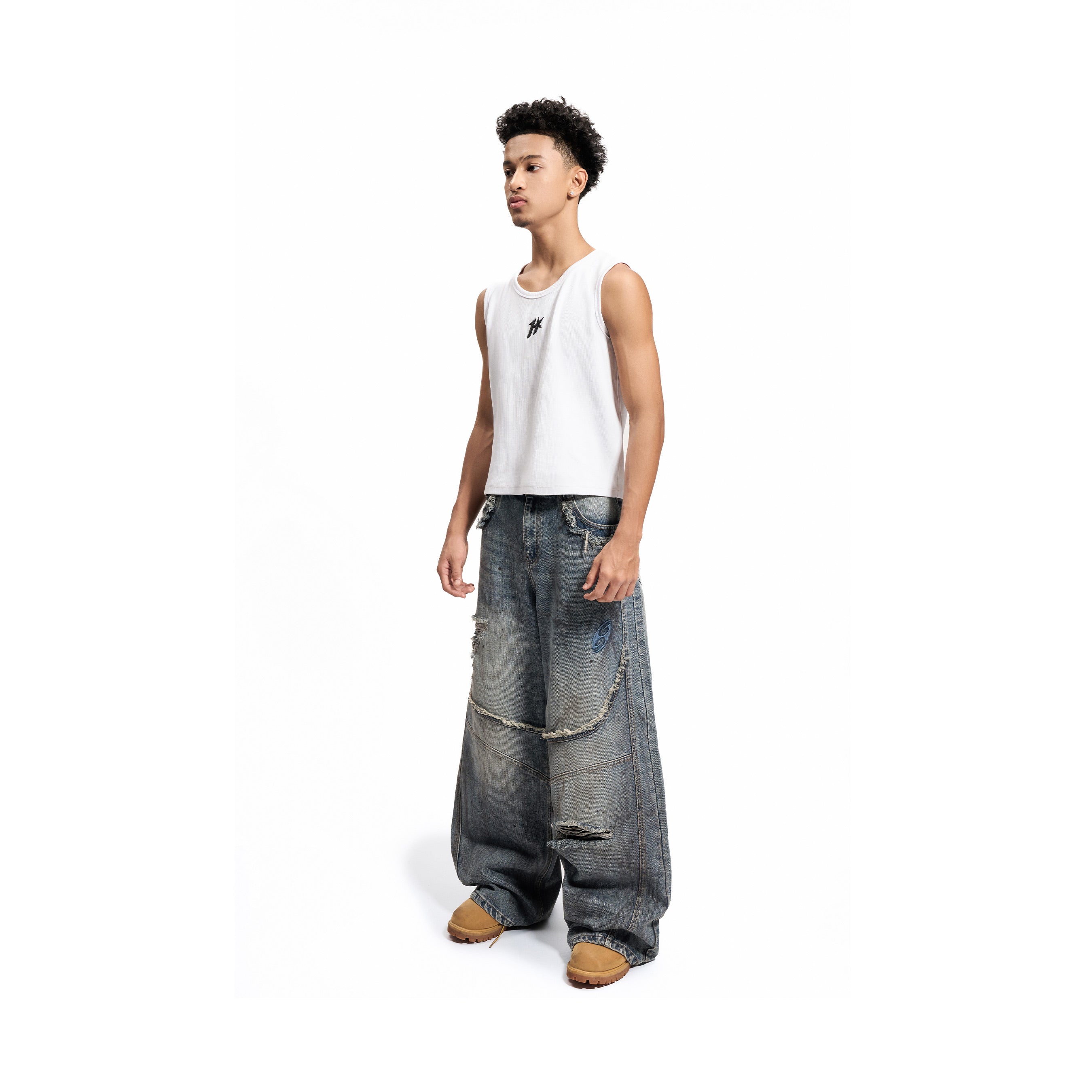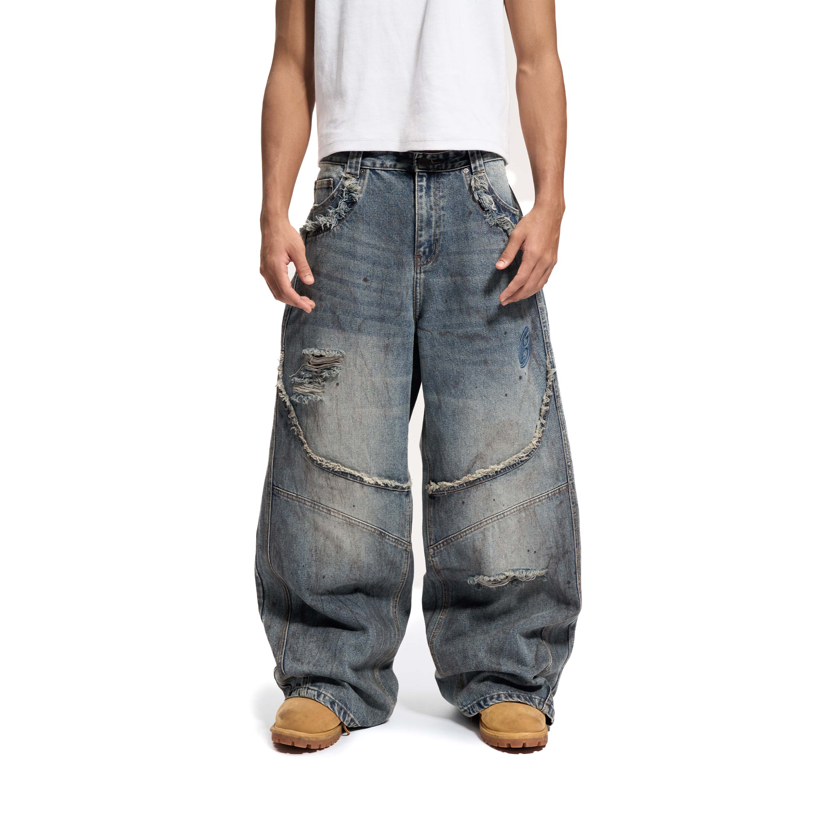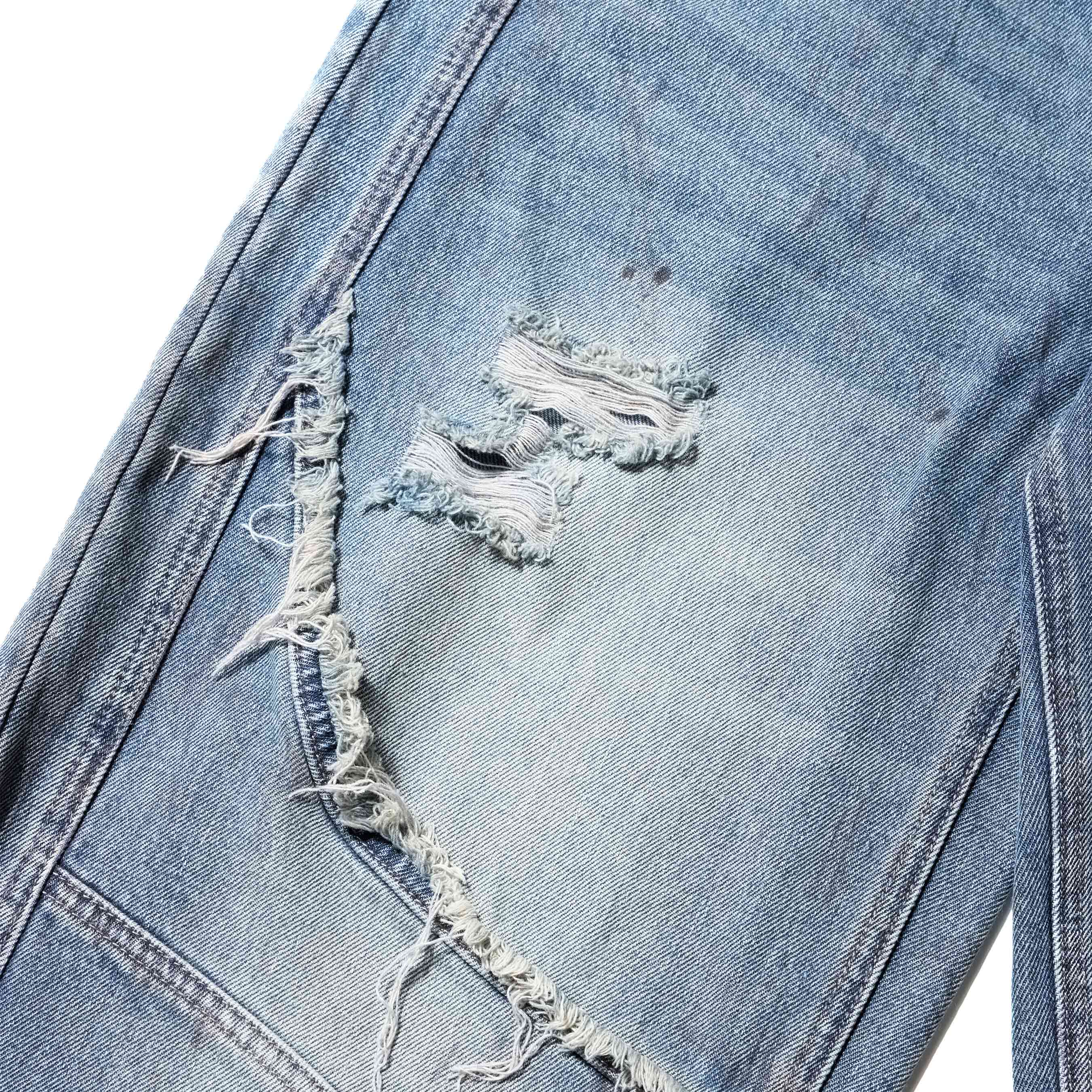 - Straight-fit jeans with a low rise and full-length coverage over the heels