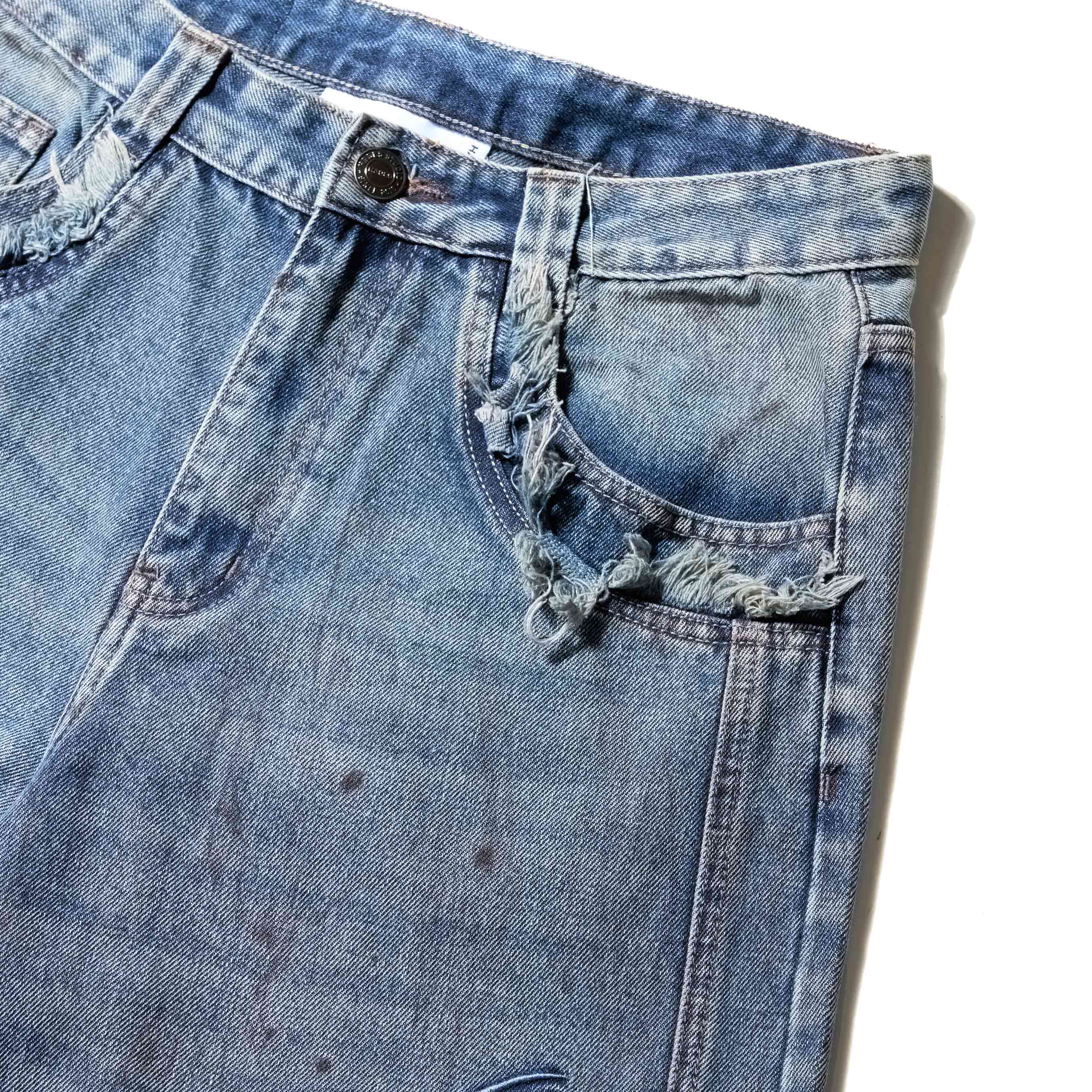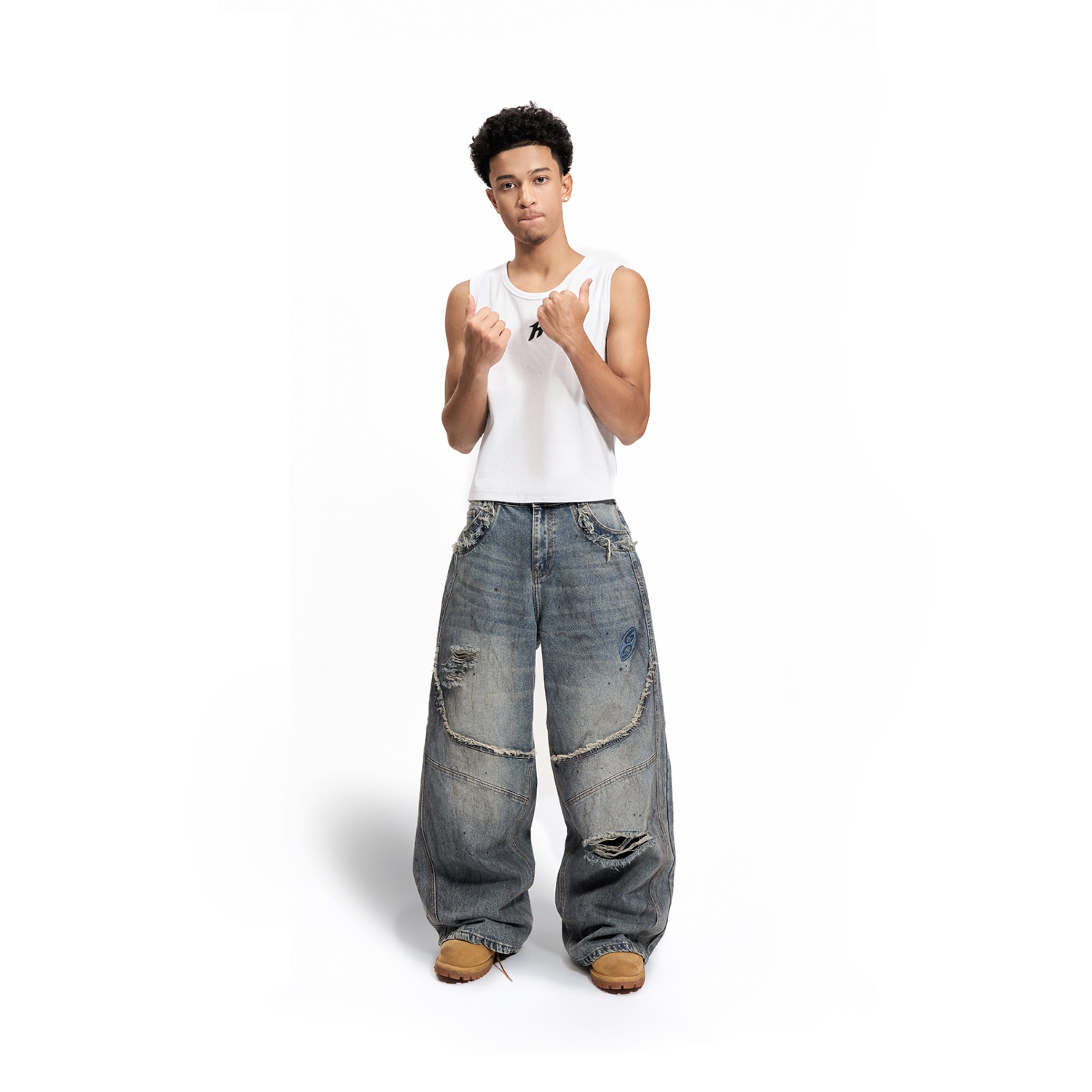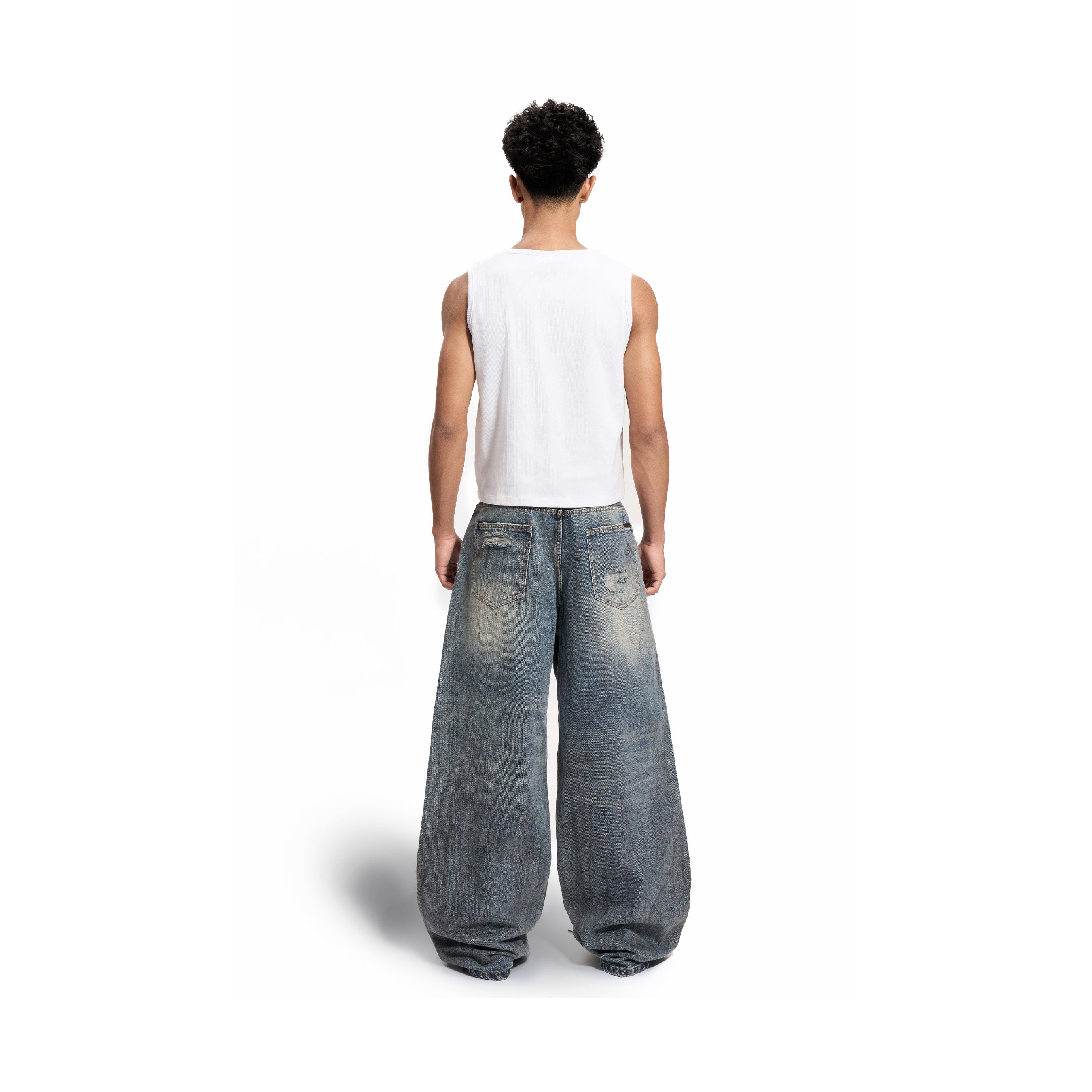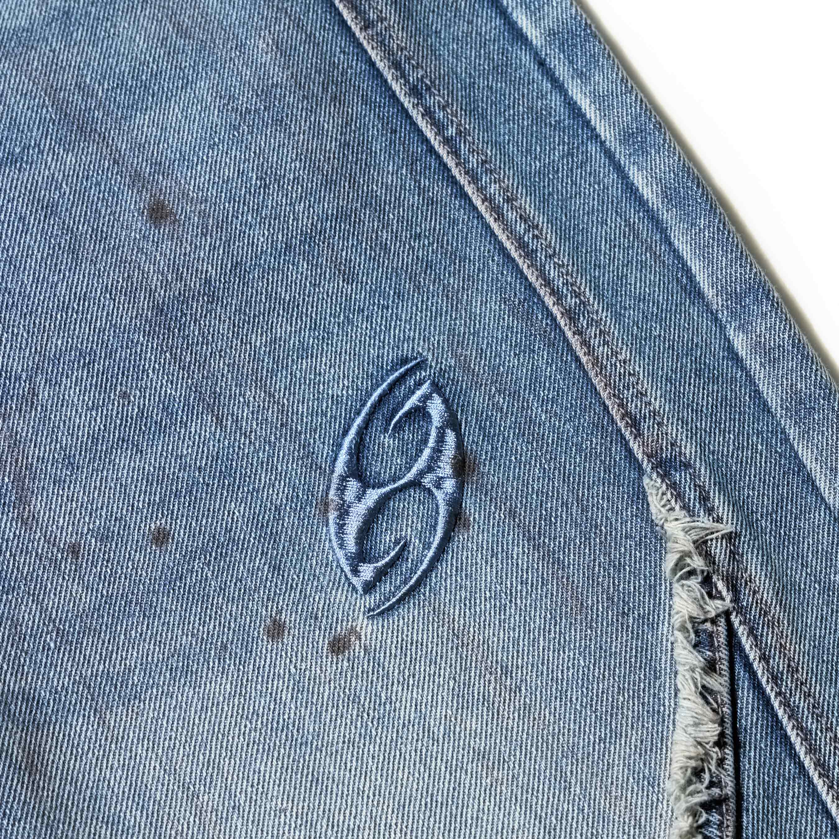 - Straight-fit jeans with a low rise and full-length coverage over the heels