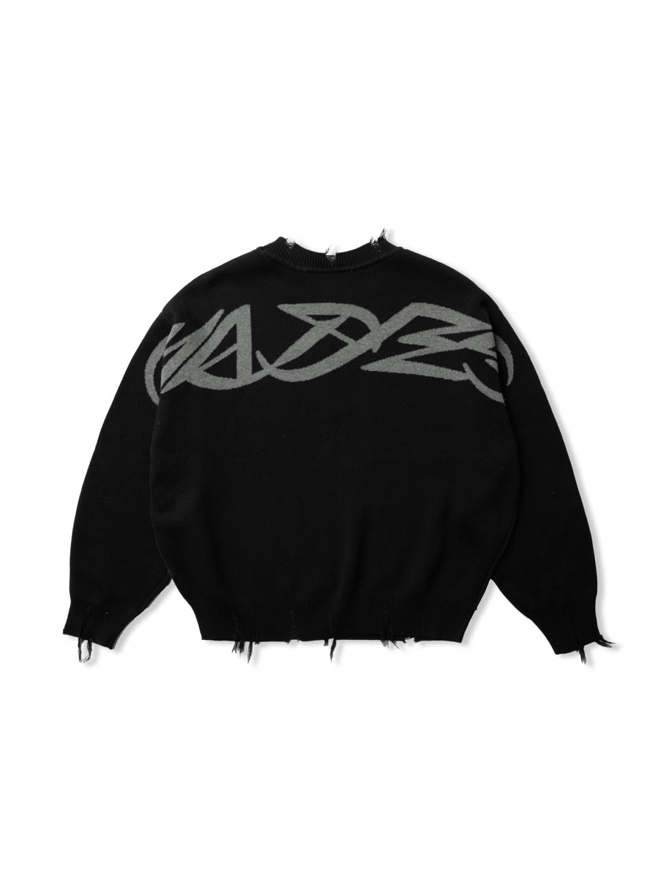 • Ribbed neck, cuffs, and hem with distressed finishing