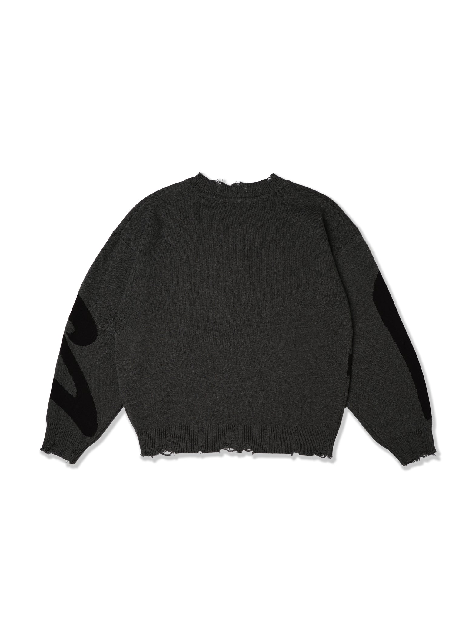 • Ribbed collar, cuffs, and hem with distressed detailing