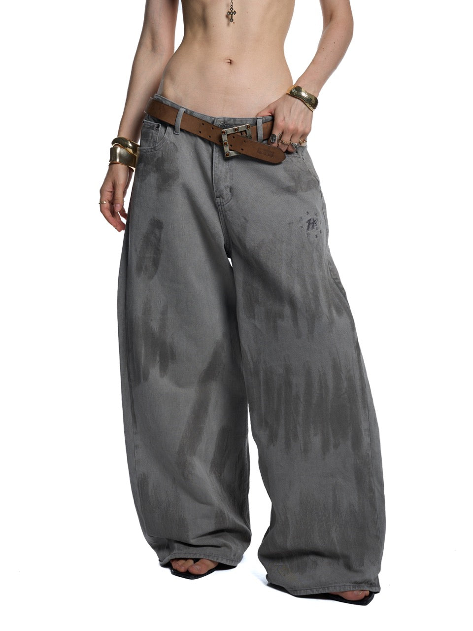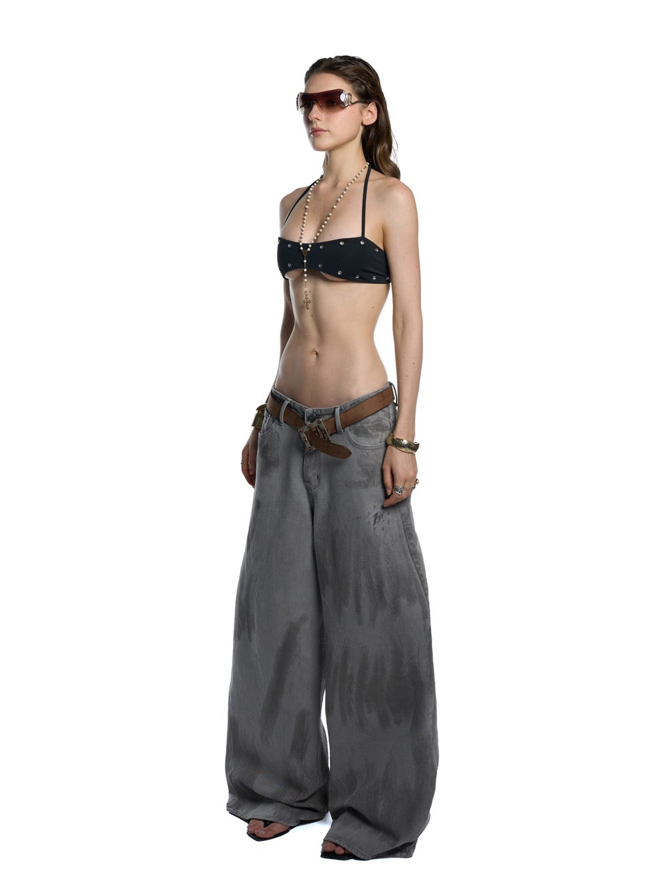 • Wide-leg jeans, full-length, floor-sweeping cut