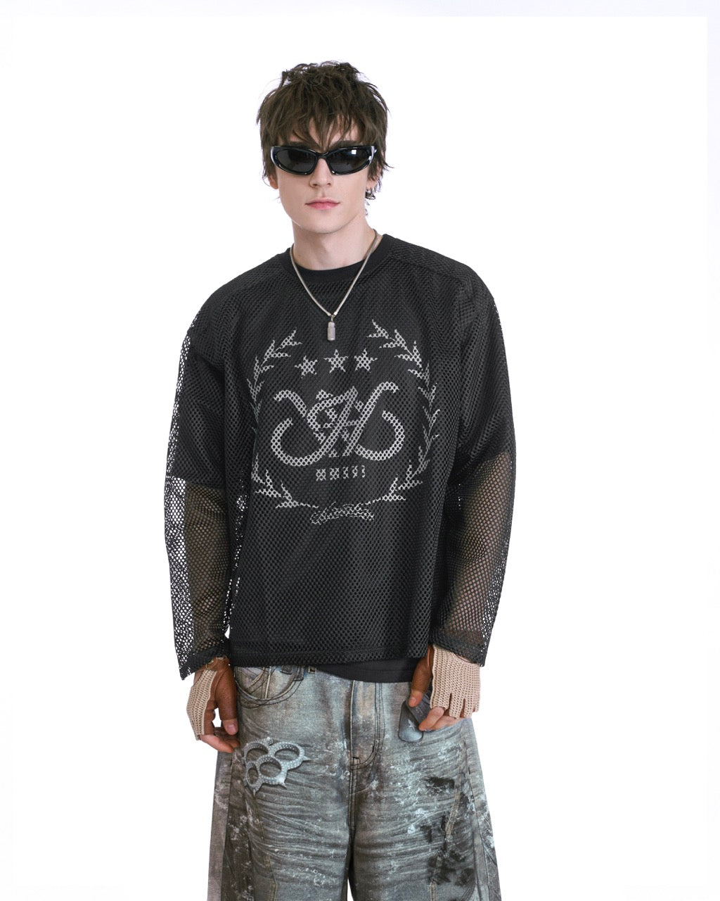 HADES LAUREL MESH LONGSLEEVE TEE - BLACK