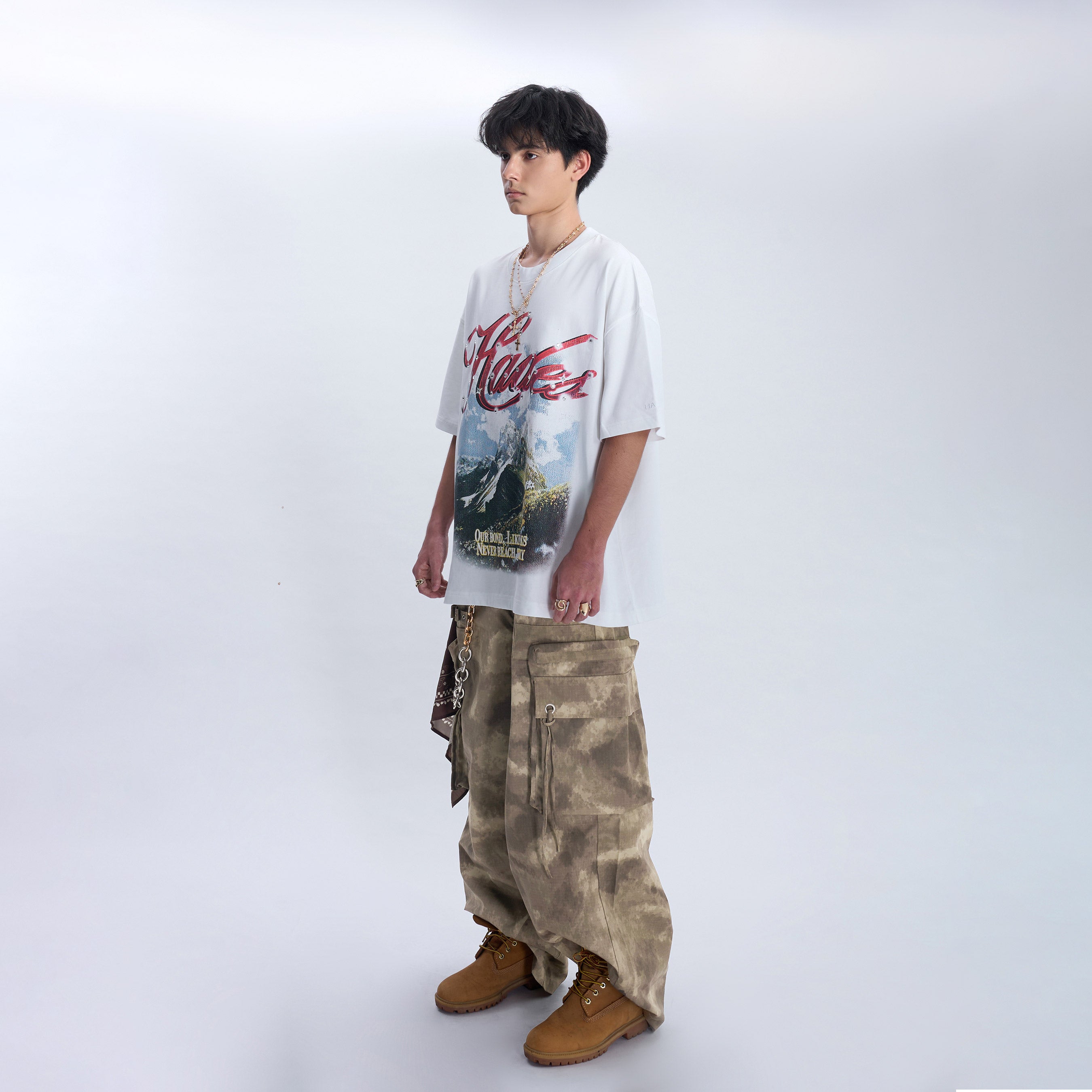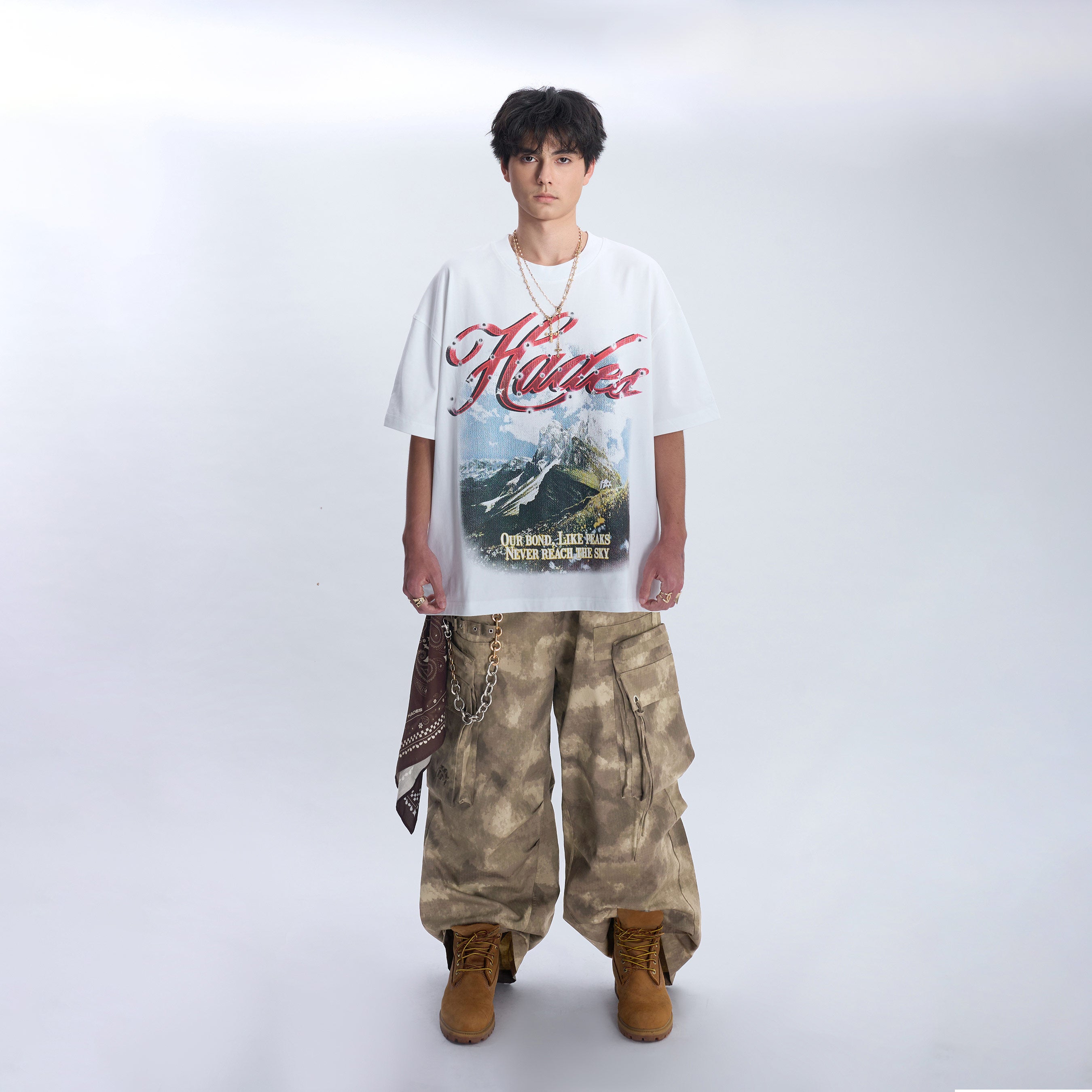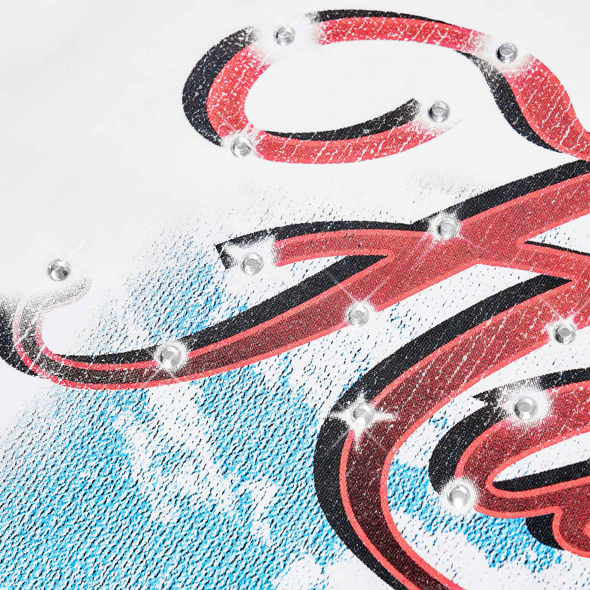 • Graphic design combining silkscreen printing and rhinestone detailing