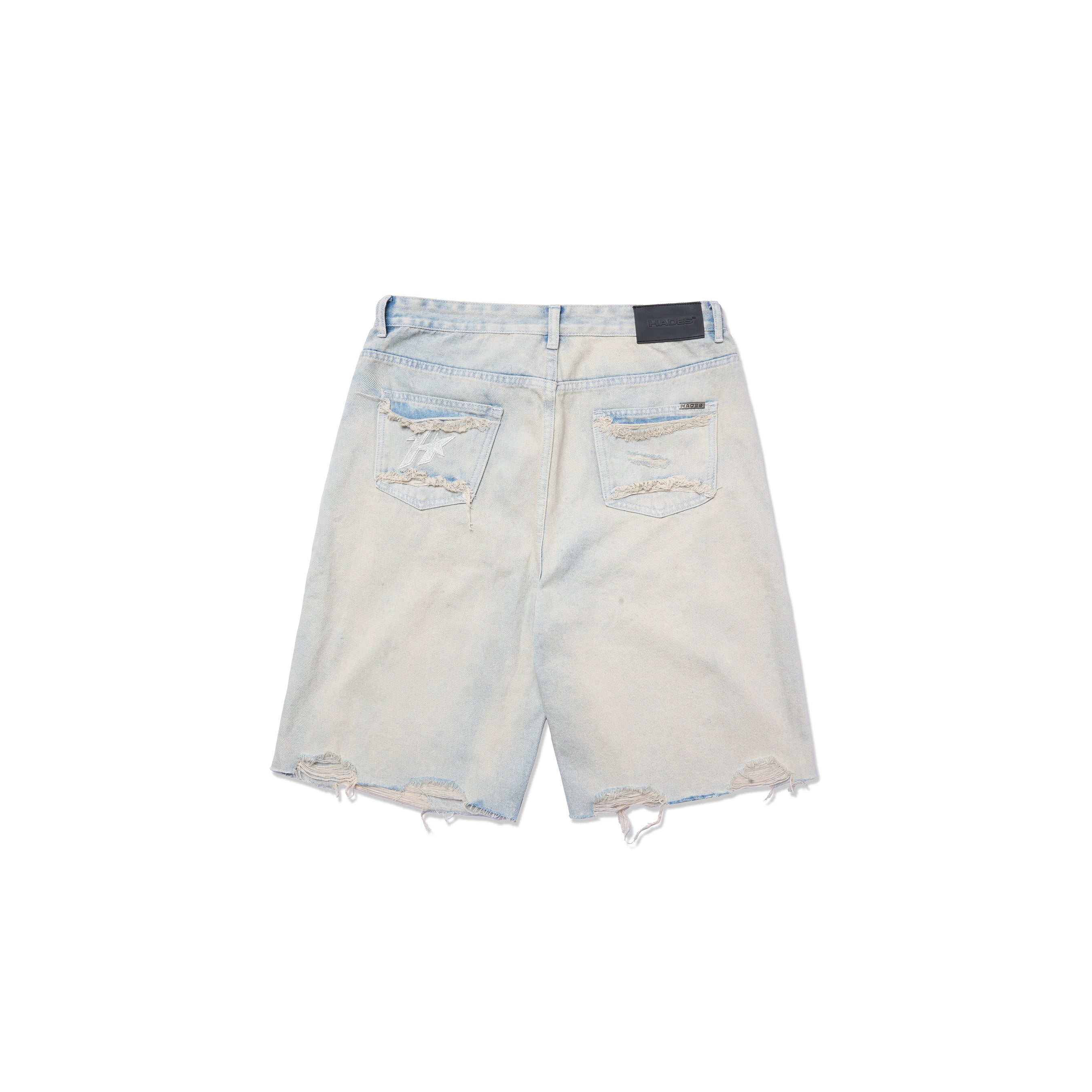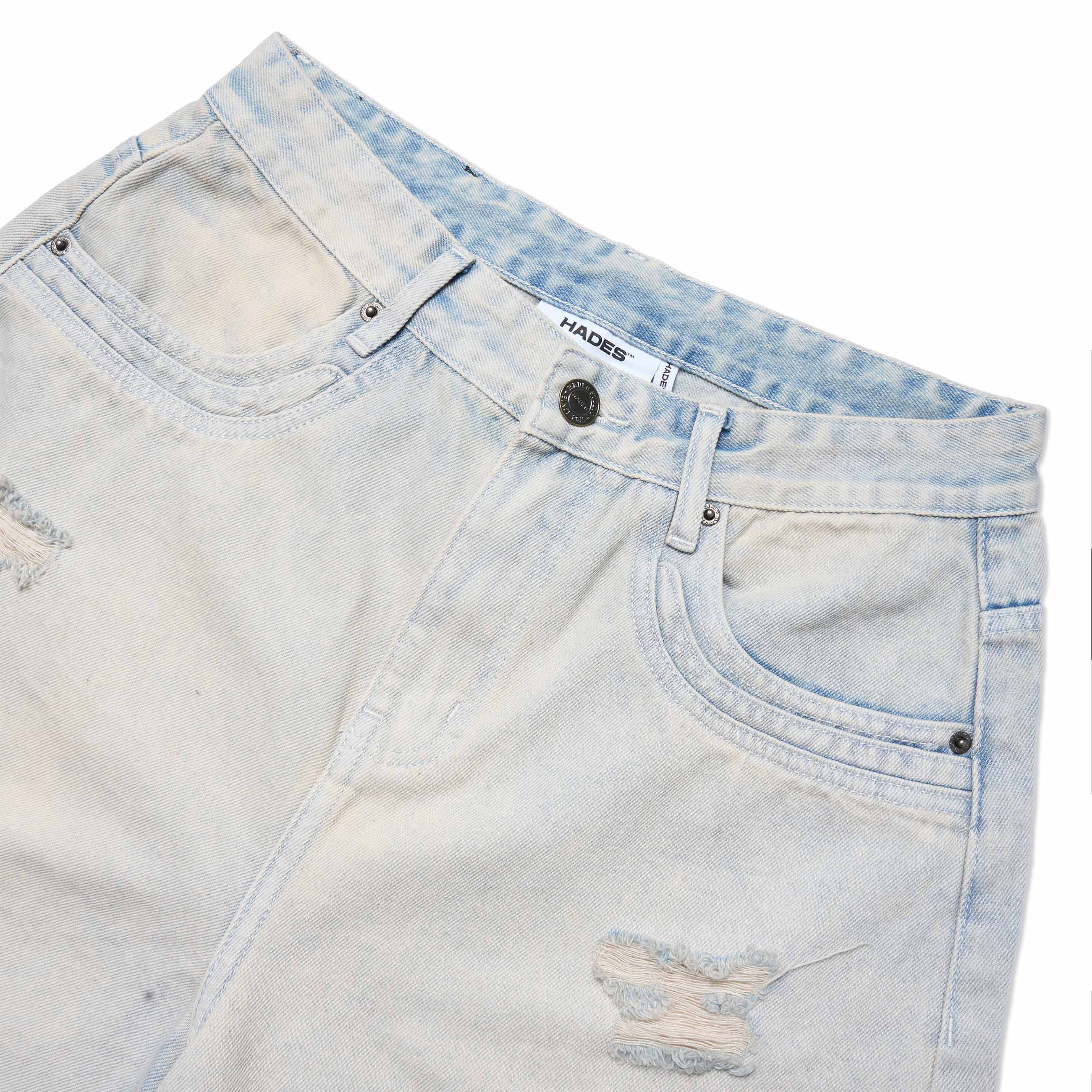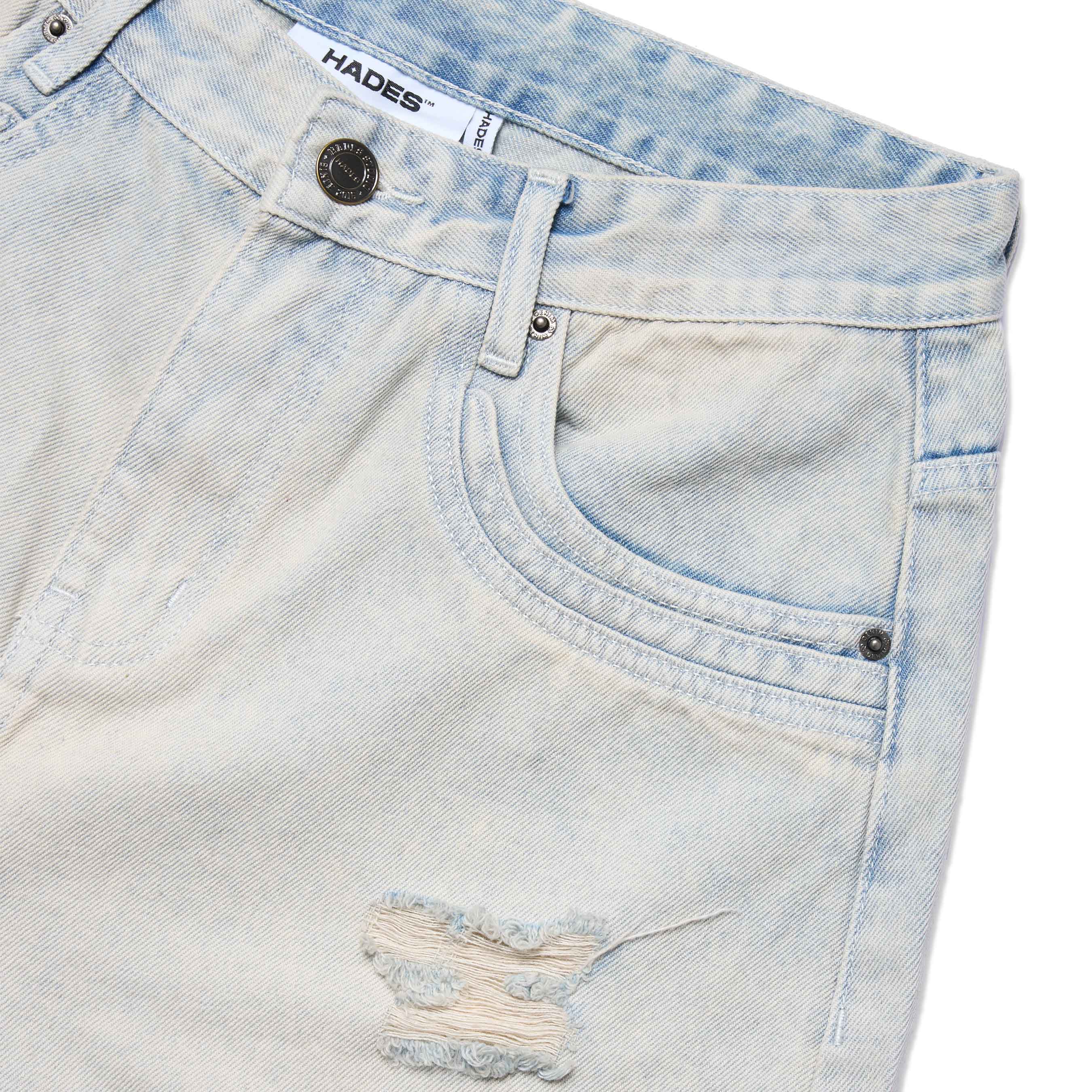 • Layered raw-edge back pockets with raised embroidered HADES logo