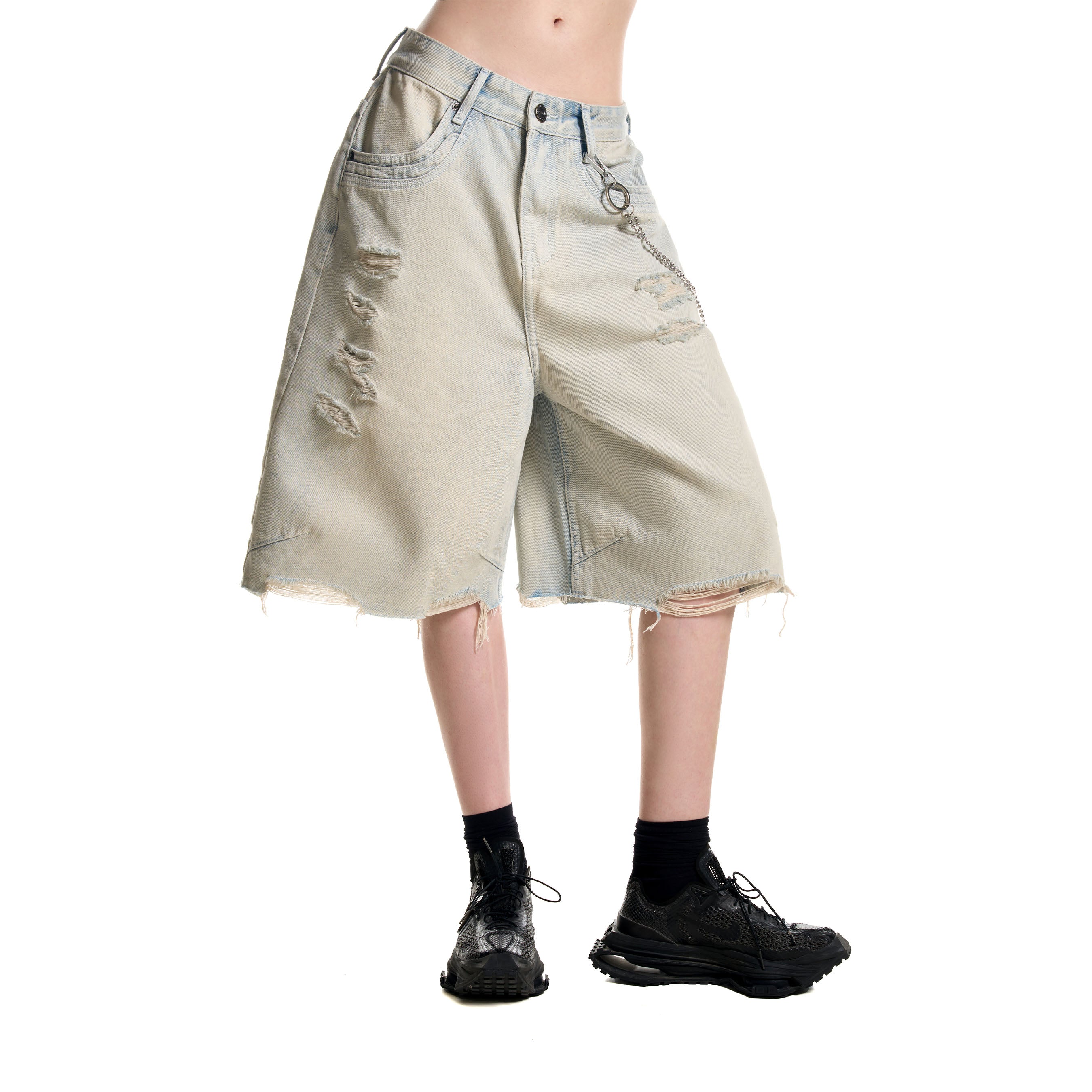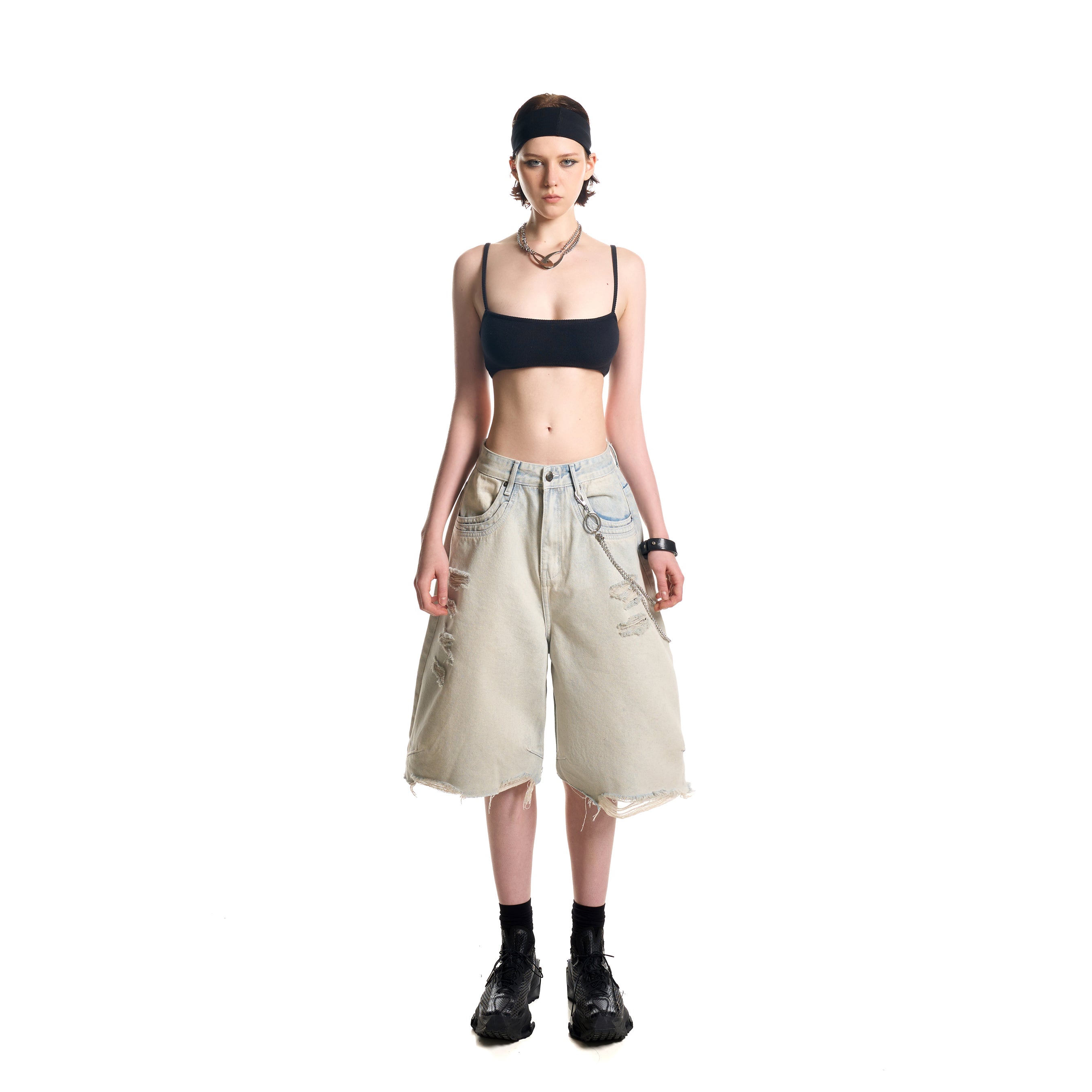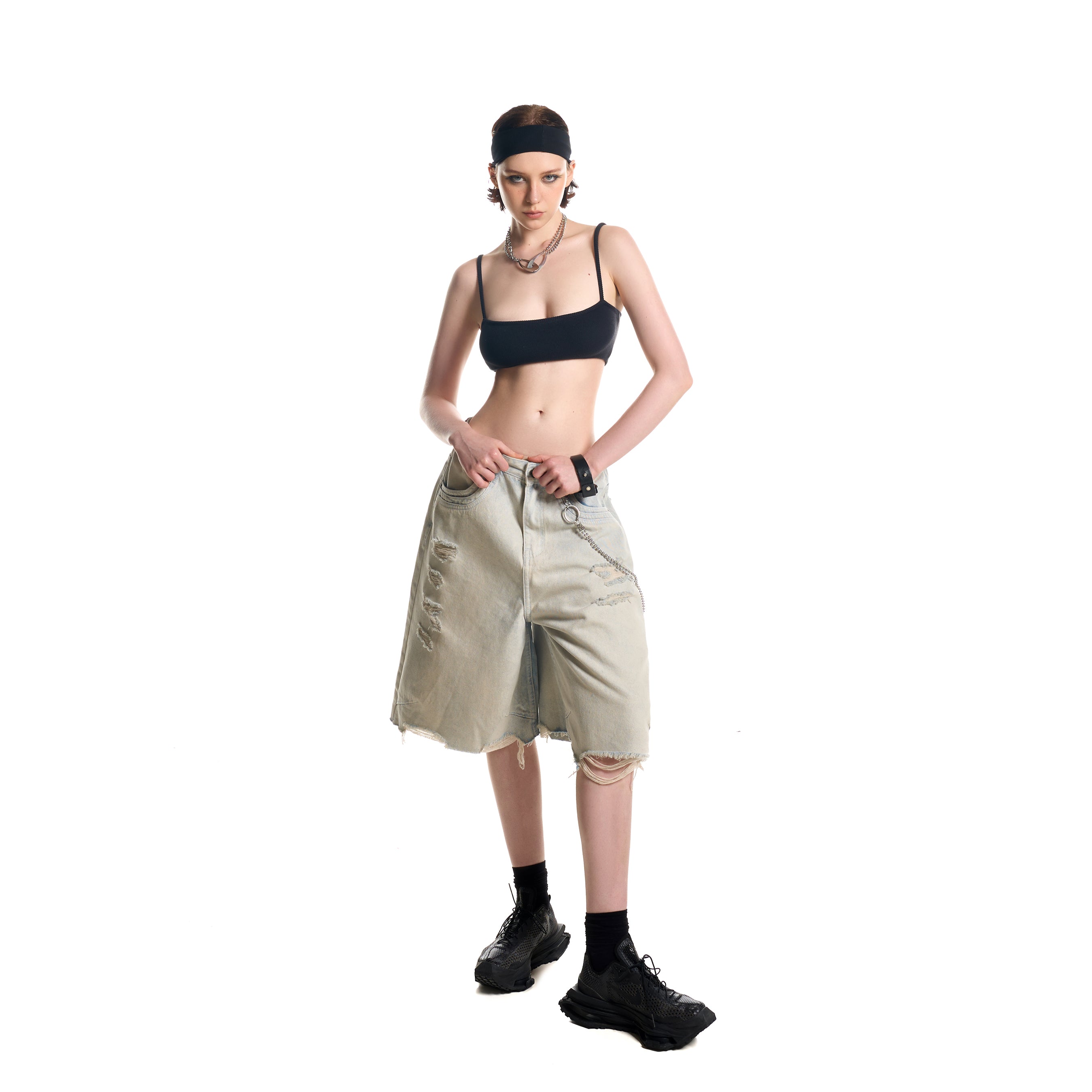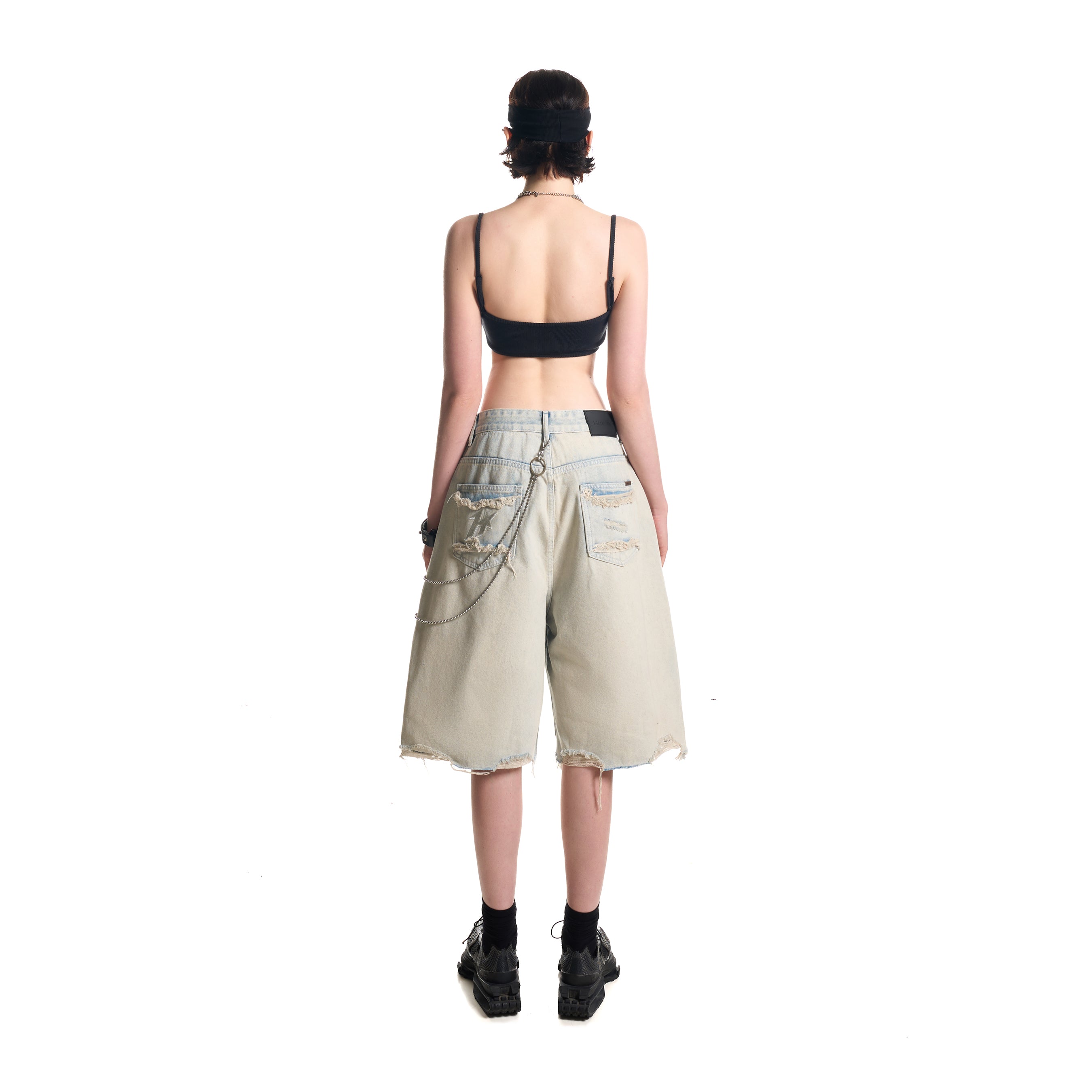 • Layered raw-edge back pockets with raised embroidered HADES logo